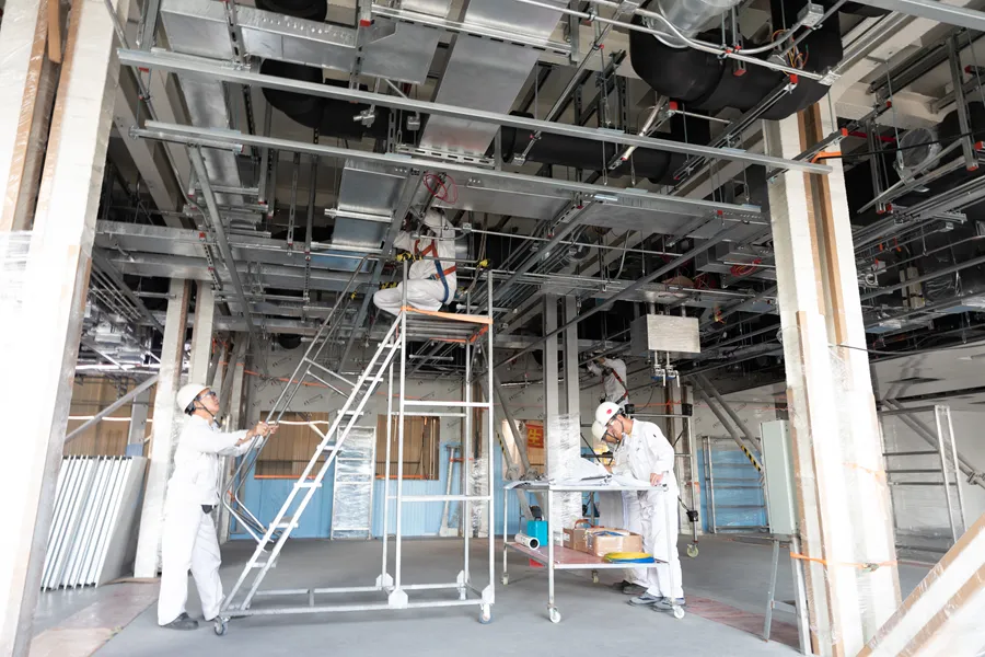 その後、配管とHVACダクトの設置とその他設備の設置がされます。