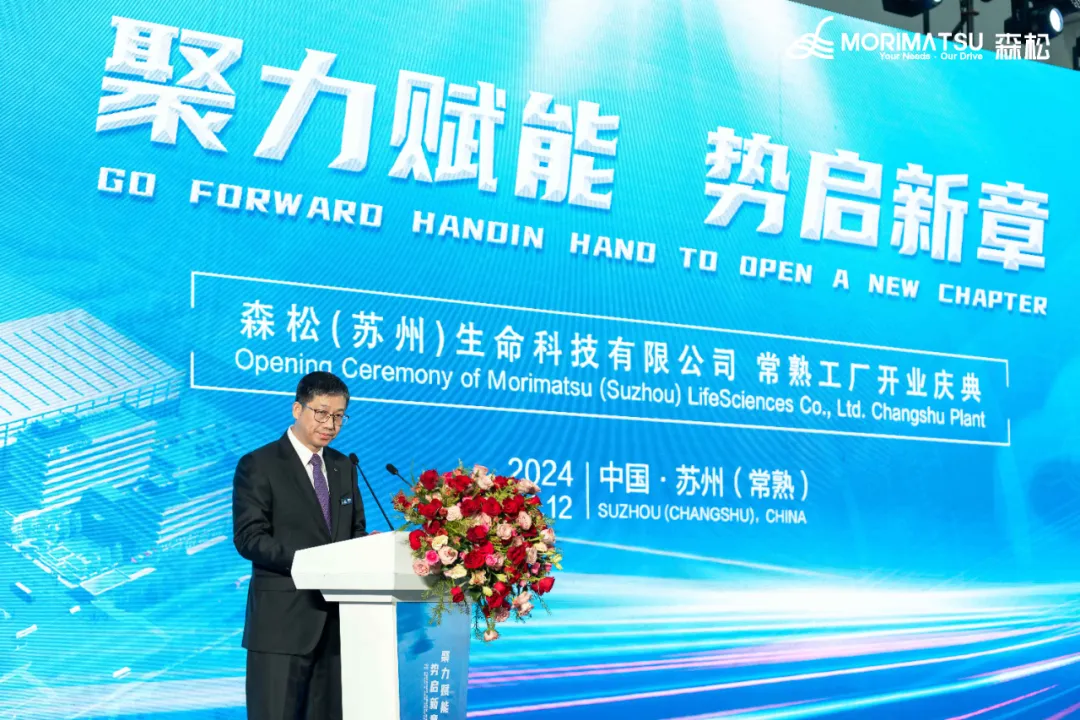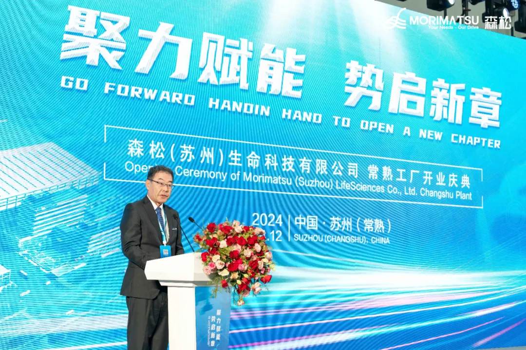 Senior officials of Changshu City and the Economic Development Zone, partners and customers, thank you for attending this opening ceremony. After the official opening of the Changshu plant of Morimatsu (Suzhou) LifeSciences Co., Ltd, Morimatsu has a total of 4 production bases in China. We will continue to move forward with great efforts and determination by adhering to the ESG strategies of putting people first, actively participating in public welfare and charitable causes, and incorporating environmental protection concepts into our products and services.