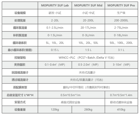 一次性切向流过滤系统可满足20-2000L+工艺处理规模,涵盖从小试-中试-商业化生产等不同级别使用,随设备配备压力、流量、温度、电导率、UV等传感器在线显示与反馈调节。