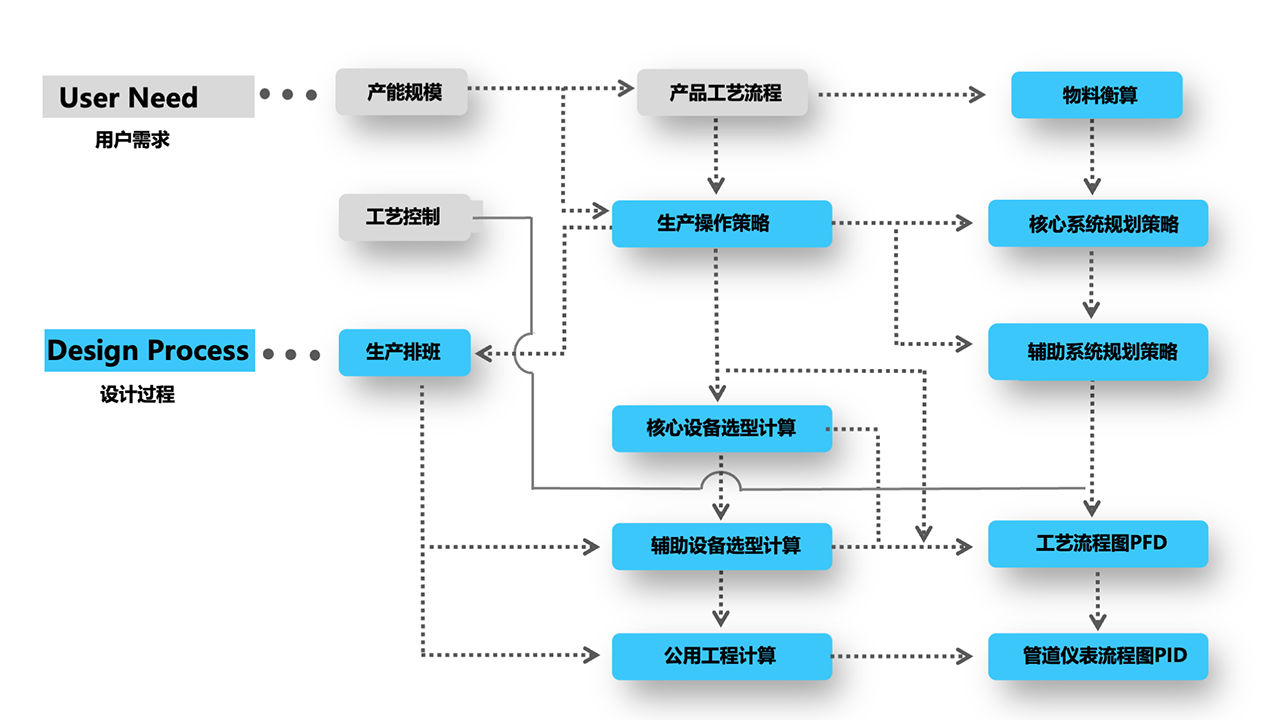 基于客户提供的URS或其他类似工艺描述文件,我们可以进行工艺流程图PFD的设计,包括生产工艺、产能计算、单元操作等;PFD完成后,我们将设计P&ID图,对工艺、仪表和公用工程进行更详细的描述;同时,也会提出工艺生产系统中工艺设备和公用设备的技术规格书。与此同时,在整个工艺设计的过程中,我们将进行多次的审核,确保设计符合客户URS的要求。