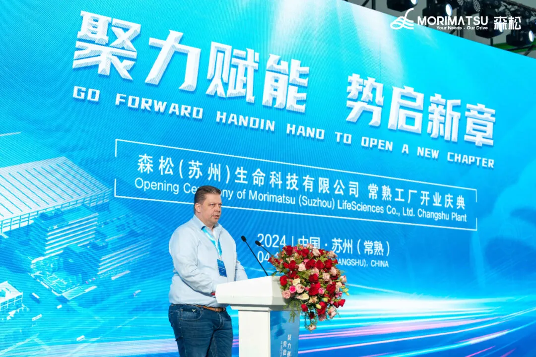 Senior officials of Changshu City and the Economic Development Zone, partners and customers, thank you for attending this opening ceremony. After the official opening of the Changshu plant of Morimatsu (Suzhou) LifeSciences Co., Ltd, Morimatsu has a total of 4 production bases in China. We will continue to move forward with great efforts and determination by adhering to the ESG strategies of putting people first, actively participating in public welfare and charitable causes, and incorporating environmental protection concepts into our products and services.