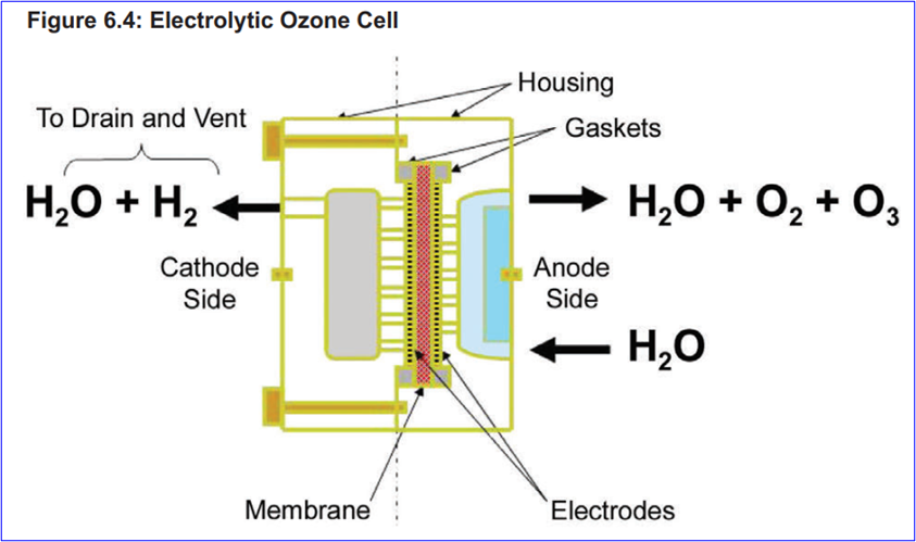 纯水系统储罐和循环回路在环境温度下工作,利用电解水臭氧发生器,向水中添加臭氧。储罐中的水通过在储罐内保持有效的臭氧水平来连续消毒。当水进入循环回路时,它会通过紫外线臭氧破坏系统,臭氧在到达使用点之前被破坏。循环回路、系统需要定期消毒,通过关闭UV灯,来提高循环管路、整个系统的臭氧浓度。储罐相对于循环回路,更容易滋生微生物,而罐内水中臭氧的溶解、罐顶臭氧气态的存在,能很好地控制储罐内的微生物。