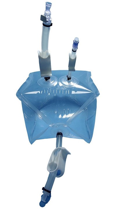 多个2D储液袋按层放置在一个轻便、可移动的补料推车上,可轻松实现同时向多个目标或者向同一目标进行多种液体补料的需求。